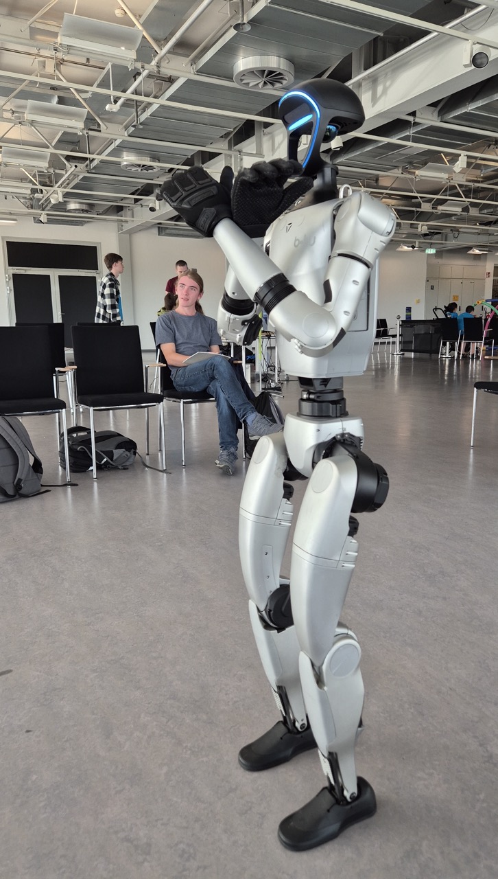 - Eddy, ein 1,30 Meter großer humanoider Roboter, der laufen, winken und seine Umgebung mit 360-Grad-Sicht erfassen kann.