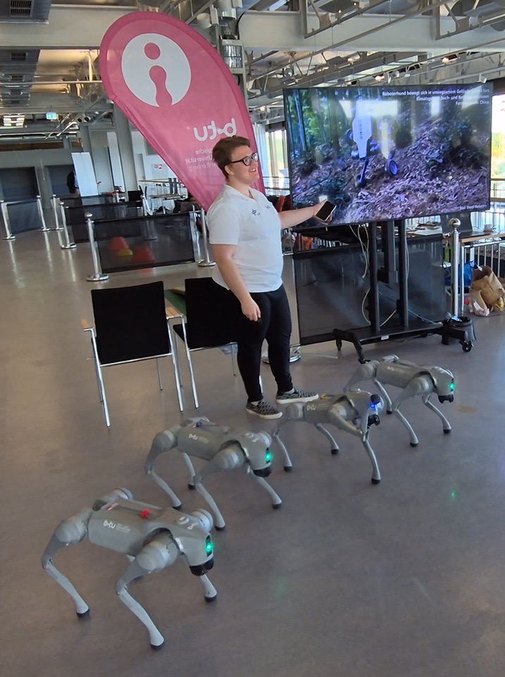 - Vier agile Mini-Roboterhunde, die im Team agieren, tanzen und beeindruckende Bewegungsabläufe zeigen.