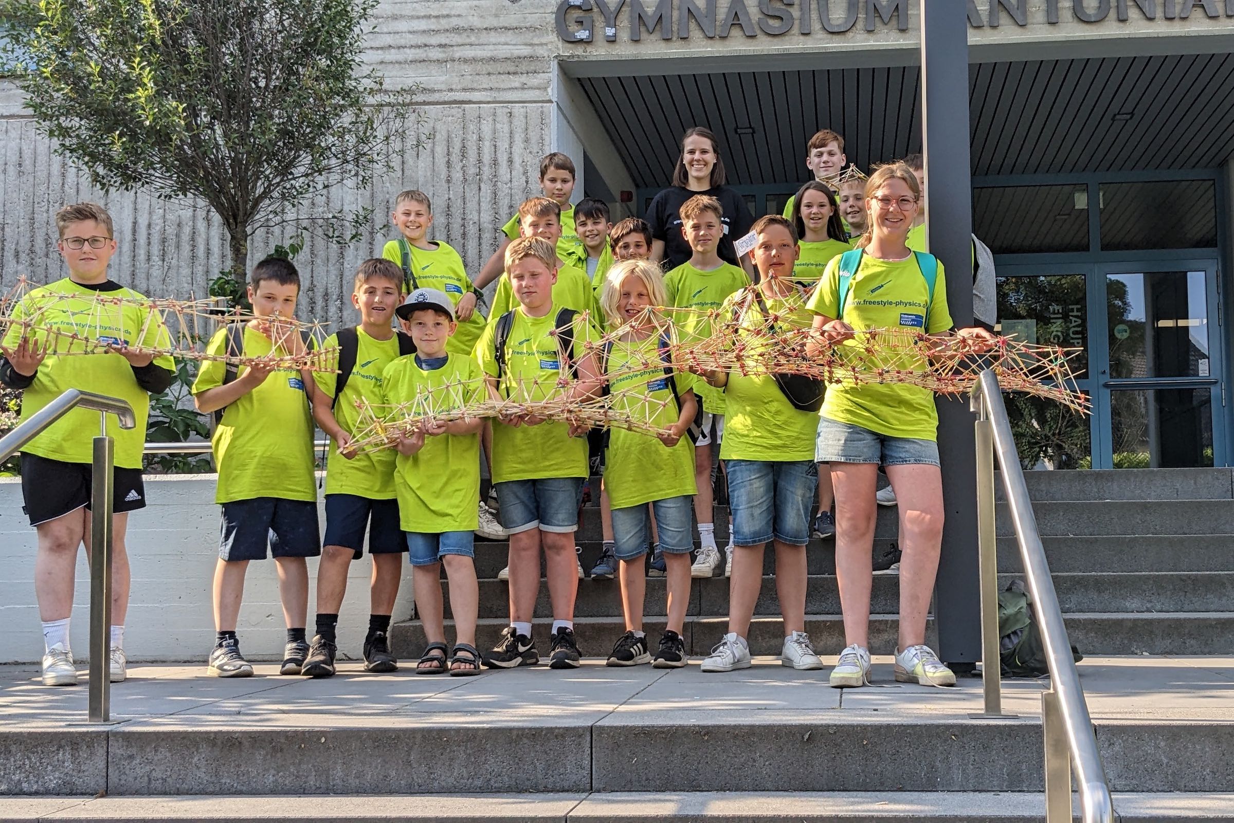Am Dienstag, den 13.6. war es endlich soweit – das heiß ersehnte Finale des Physikwettbewerbs „freestyle physics“ stand an. Die 18 Schülerinnen und Schüler der MINT-AG aus den Jahrgängen 5-7 machten sich auf den Weg zur Universität Duisburg. Für einige Schülerinnen und Schüler war es die erste Teilnahme an einem Wettbewerb. Dementsprechend groß war die Aufregung – hoffentlich klappt alles.